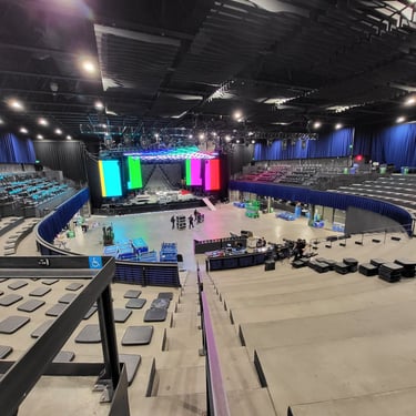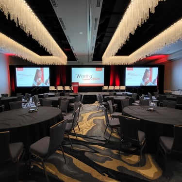 Lighting: Dynamic stage lighting, branded color schemes, and spotlighting.