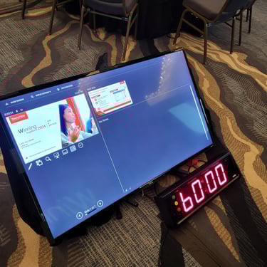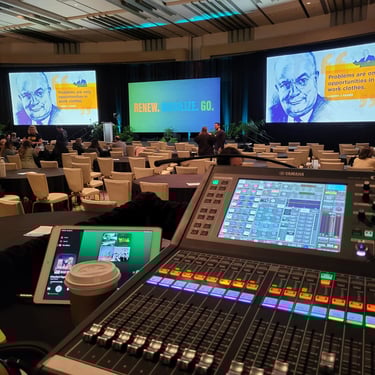 Extras: Confidence monitors for presenters, and optional live streaming.