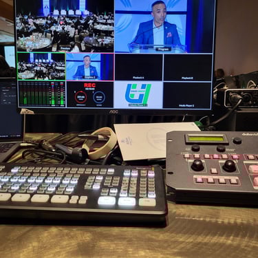 Video: Multi-camera production with live switching, projection mapping, and custom media integration.
